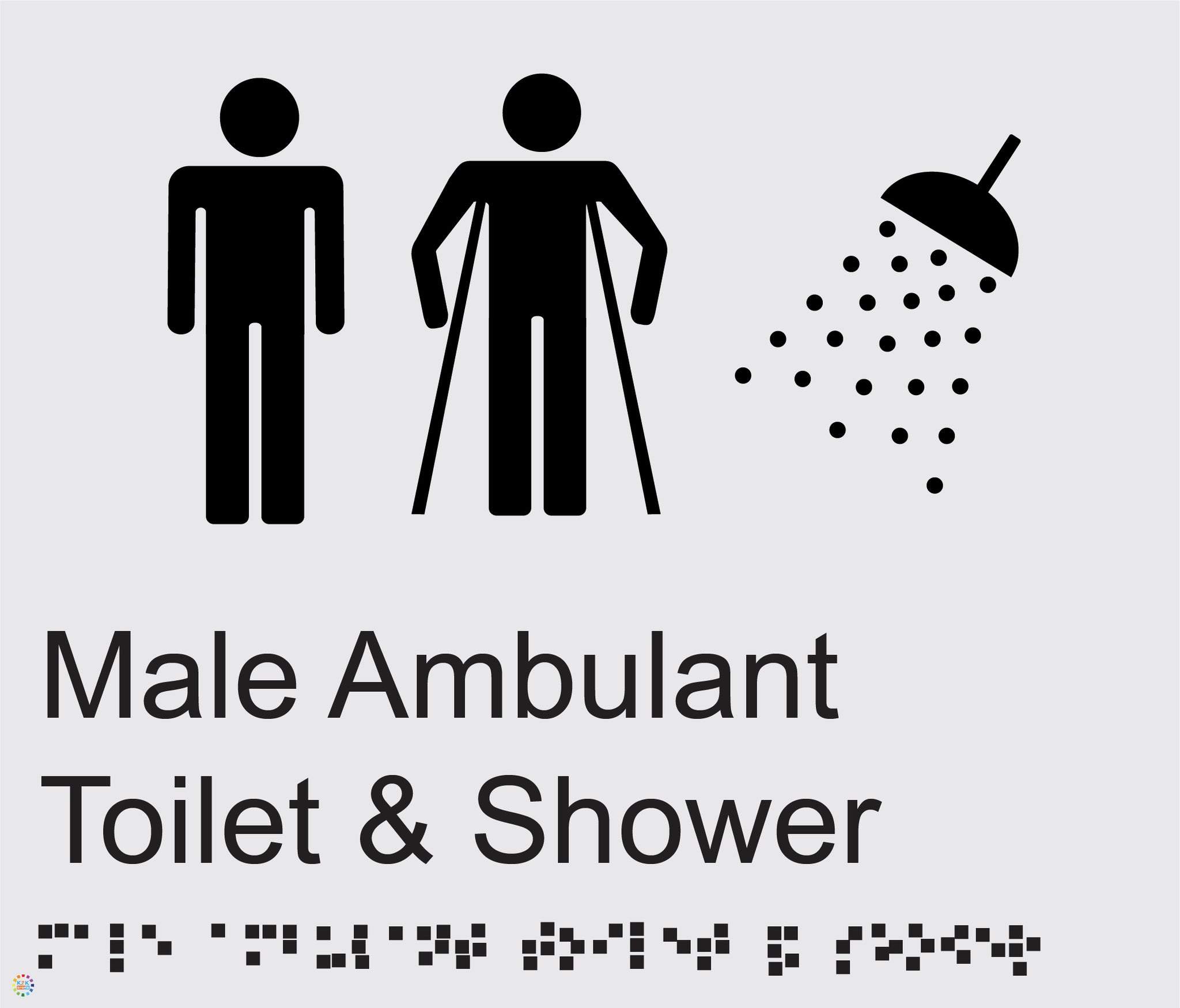 Male Ambulant Toilet & Shower - Braille and Tactile Sign SKU:BR69SL